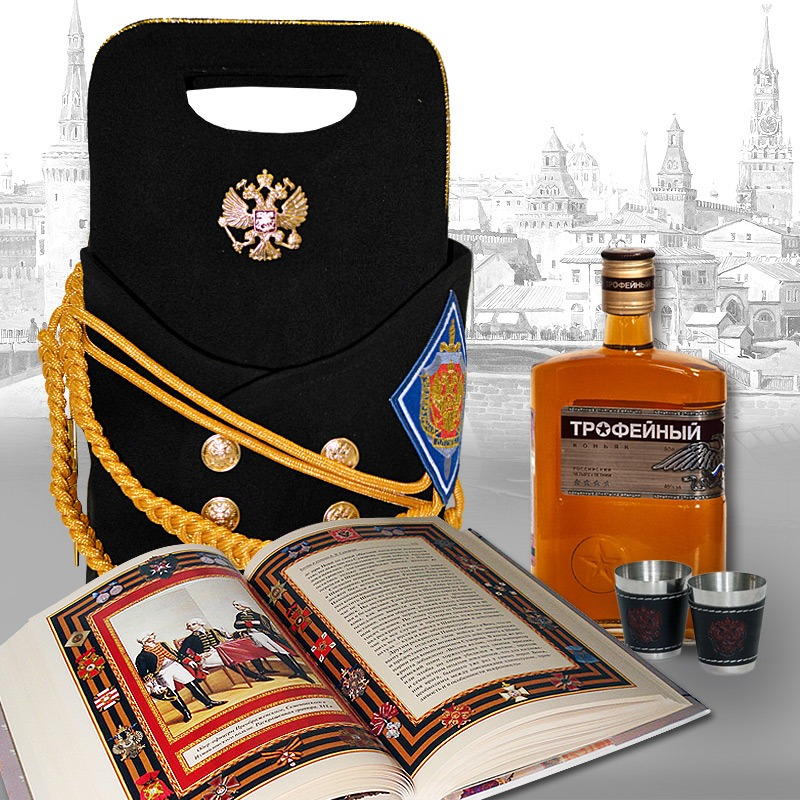 Подарочный набор "ФСБ" это оригинальный подарок для людей, которые чтут традиции России, ее победы и достижения. Внешний вид упаковки (кофр) стилизован под современную форму спецслужб (офицерский мундир). Такой подход позволил придать подарку неповторимость и очень оригинальный вид. Кофр универсален, он может вмещать в себя любые подходящие по размеру подарки. Продукция уникальна, аналогов нет, это собственная разработка нашей компании.