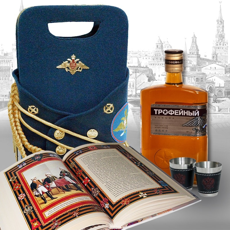 Подарочный набор "ВКС" — это оригинальный подарок для людей, которые чтут традиции России, ее победы и достижения. Внешний вид упаковки (кофр) стилизован под современную военную униформу российской авиации (офицерский мундир). Такой подход позволил придать подарку неповторимость и очень оригинальный вид. Кофр универсален, он может вмещать в себя любые подходящие по размеру подарки. Продукция уникальна, аналогов нет, это собственная разработка нашей компании. Набор включает в себя подарочный кофр из тонкого войлока, в нем подарочное издание книги "Россия. Наука побеждать" или "1812 год. Россия & Франция", стальную фляжку, две стальные стопки.