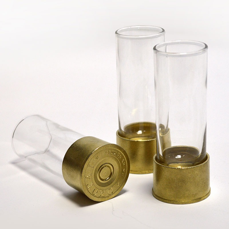 Мужской сувенир. В основе подарочного набора - три стопки-патрона. Стеклянные стопки из прозрачного стекла, с донышком из литого металла - тяжелые и увесистые. Это отличный мужской сувенир. Компактнй, прикольнй, недорогой, но выглядит очень серьезно и очень необычно.